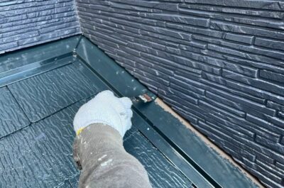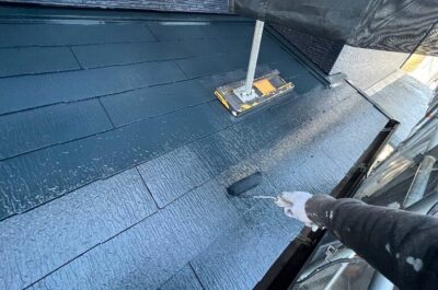 1階部分の屋根の上塗りを行いました。