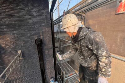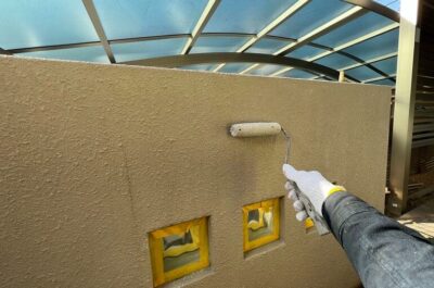 塀の下塗りを行います。