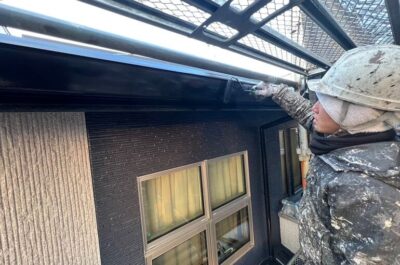 雨樋の塗装2回目を行いました。