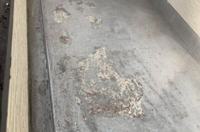 前回の防水工事の施工不良で浮いてきておりますので、浮いている部分を撤退いたします。