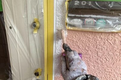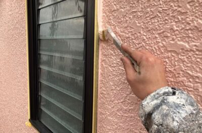 窓に漏れている塗料を掃除いたします。