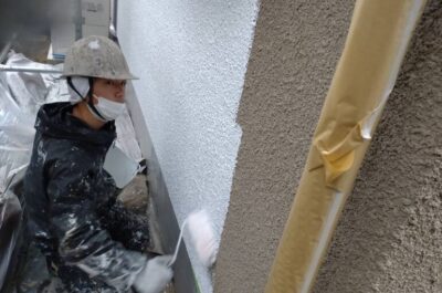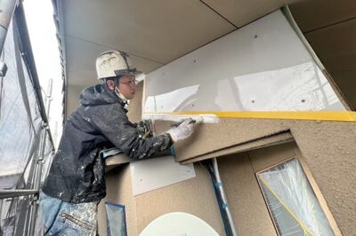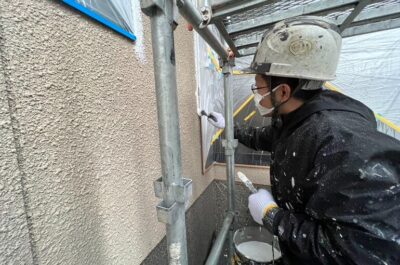 外壁の下塗りを行います。
