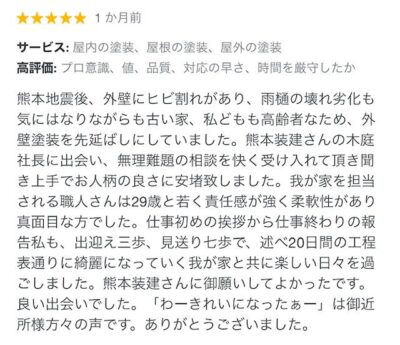熊本装建を設立し、これまでたくさんお客様のクチコミをいただいてきました😊🌟