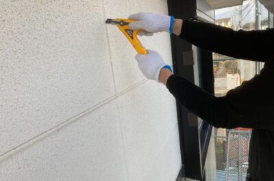 縦目地の撤去を行います。