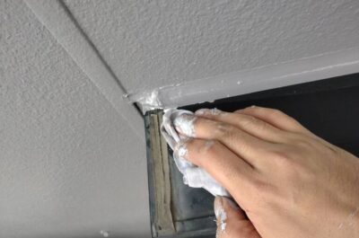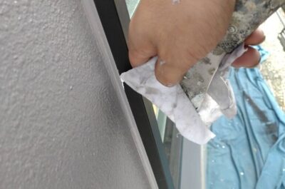窓に漏れている塗料を掃除します。