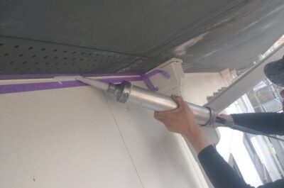 本日、引き続きコーキング作業を行います。