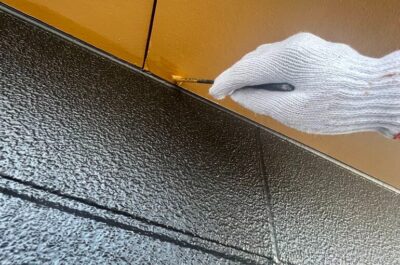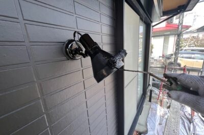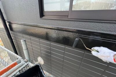 本日、引き続き付帯部分塗装上塗りを行います。
