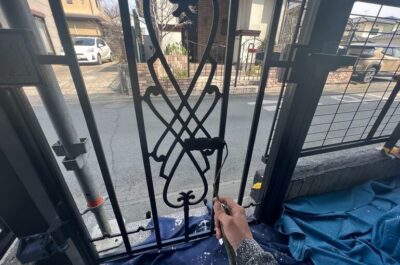 門扉の塗装を行います。