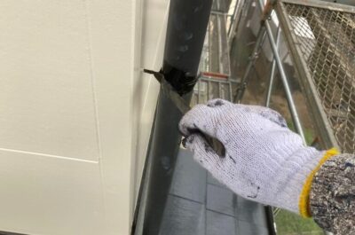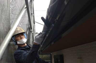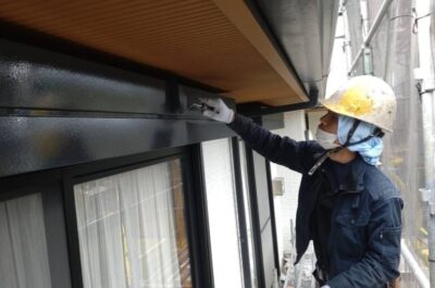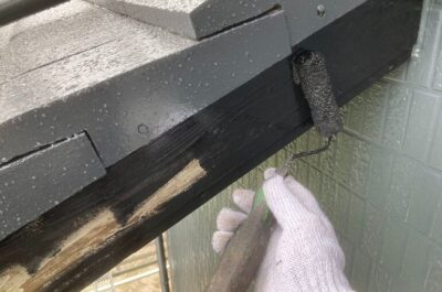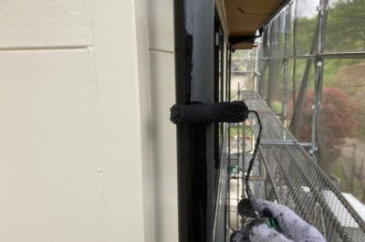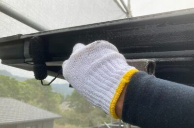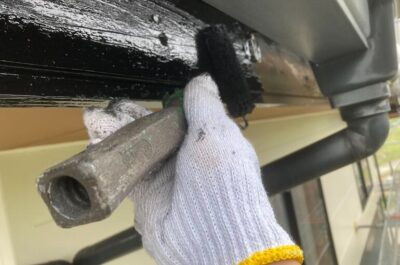 雨樋や破風、鼻隠しなどを丁寧に塗装していきます。