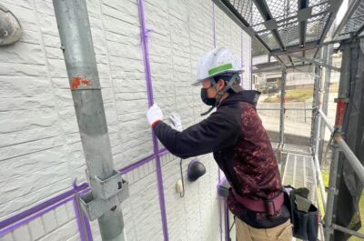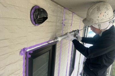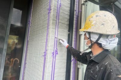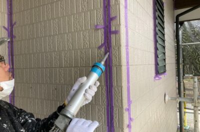 空気がはいらないように慎重にシーリング材を充填いたします。