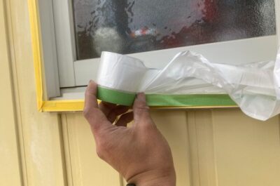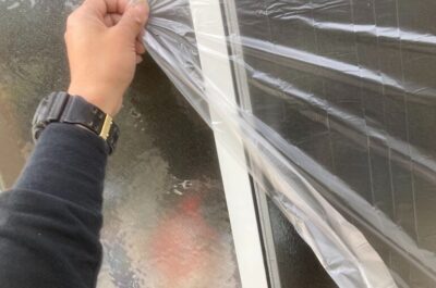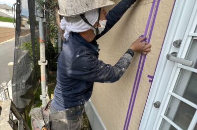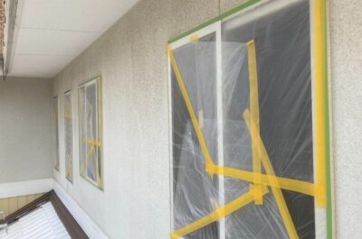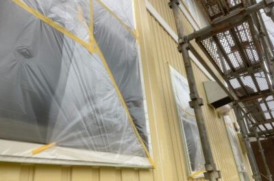 本日、窓周りの養生を行いました。