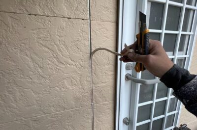 旧コーキングを撤去していきます。
