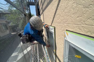 本日は窓などを汚さないよう、養生を行いました。