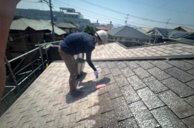 屋根の劣化がかなり激しかったため、下塗りを2回行います。