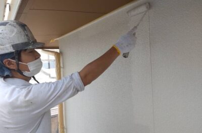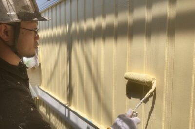 本日外壁の上塗りを行います。