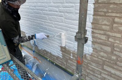 外壁の下塗りを行いました。