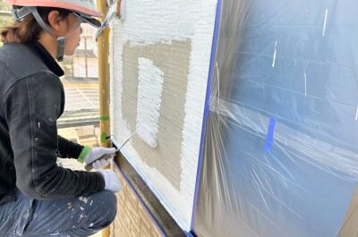 外壁の下塗りを行いました。