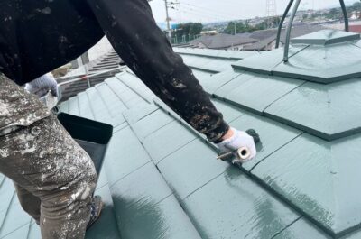 屋根の上塗りを行いました。