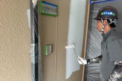 本日は外壁の上塗りを行いました。
