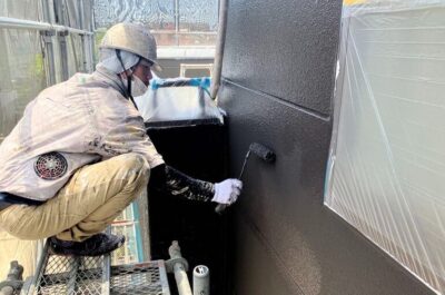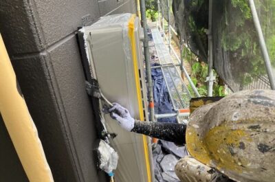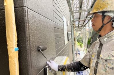 外壁の上塗りを行います。