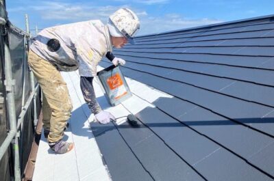 屋根の中塗りを行います。