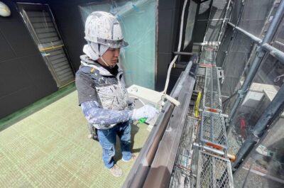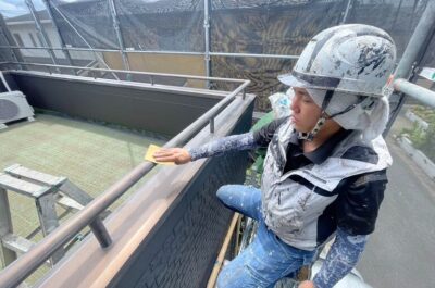 アルミの笠木ですが、施主様のご希望で塗装を行います。