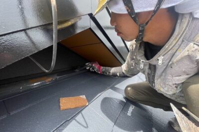 水切り板金の塗装を行います。