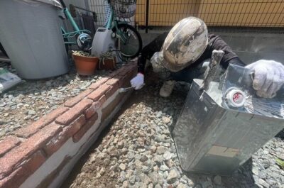塀の下塗りを行いました。