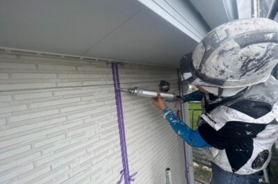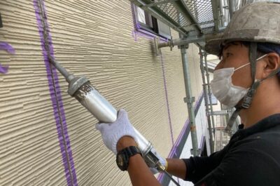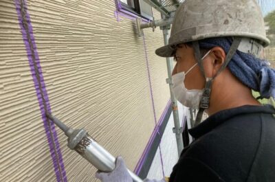 はじめに、専用プライマーを塗布したあと2面接着仕様にてシーリング工事を行います。