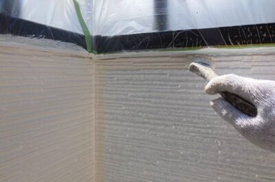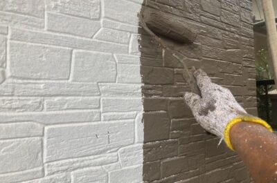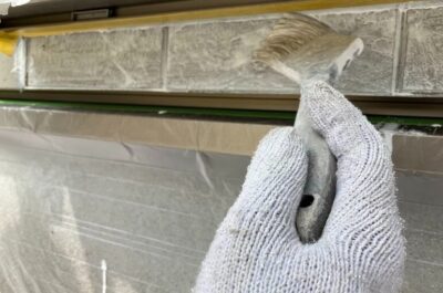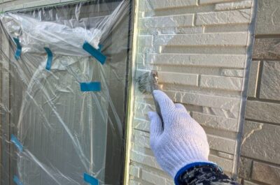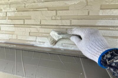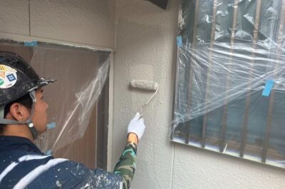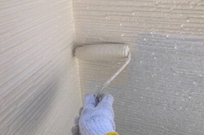 今回は光触媒コーティングを新築時に施されておりましたので、専用の下塗り材を使用し、強固に密着させます。