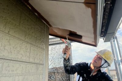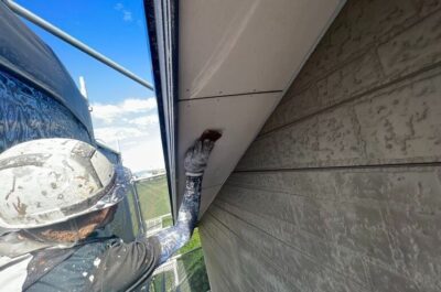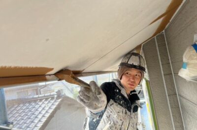 N様邸、軒天塗装を行います。