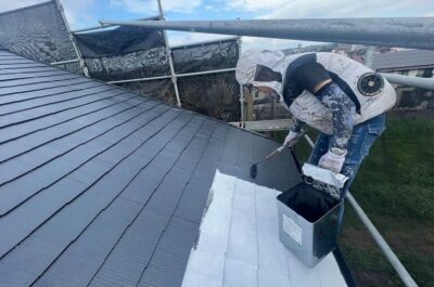 屋根の中塗りを行いました。