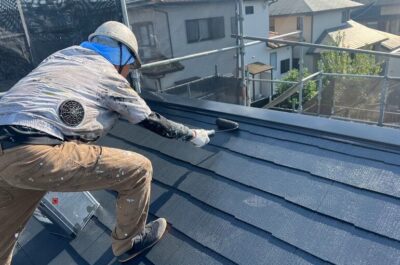 屋根の上塗りを行います。