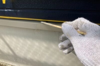 菊陽町A様邸、本日は窓に漏れている塗料の掃除や手直しを行いました。