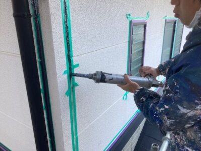 外壁材を繋いでいるコーキングは撤去しやすいので全て撤去し打ち替えをします。