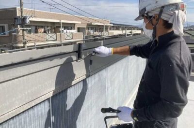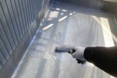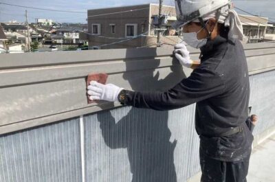 防水部分の下塗りを行います。
