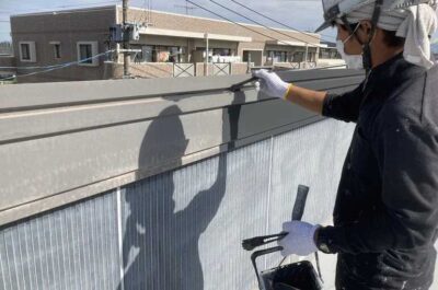 下地処理後、刷毛やローラーを使って塗装を行っていきます。