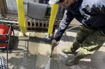 中央区N様邸、本日は高圧洗浄を行いました。
