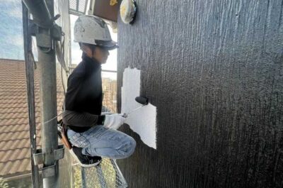 本日は外壁の上塗りを行いました。
