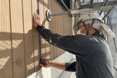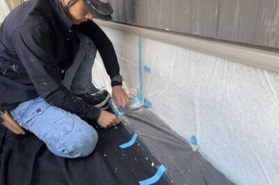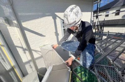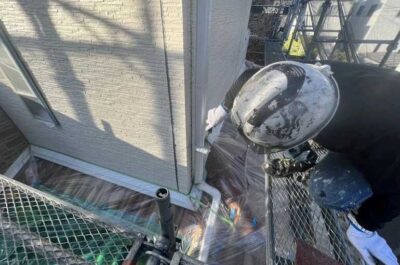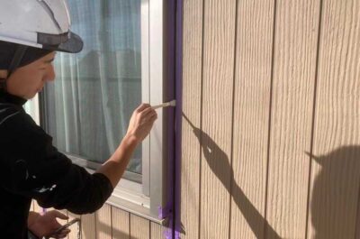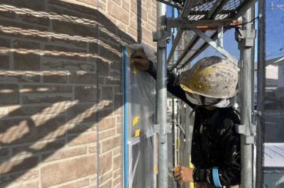 マスキングテープ貼り、プライマー塗布を行います。