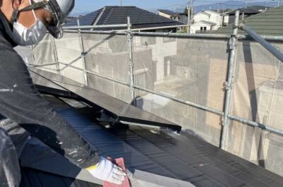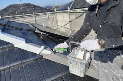 屋根板金部分のケレン・錆止め塗布を行いました。