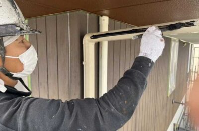 雨樋の裏が外壁に近いため、先に雨樋の塗装を行いました。