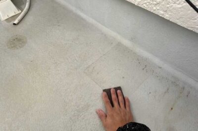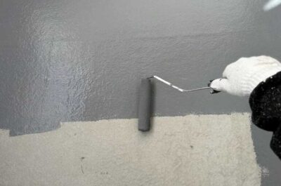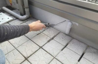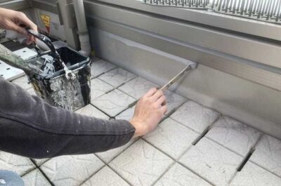 ベランダ床の立ち上がり部の塗装を行います。