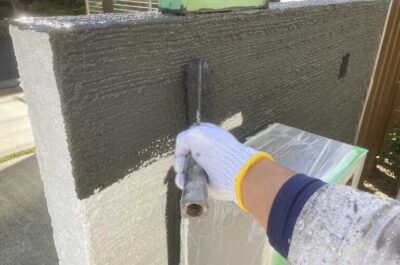 本日は塀の下塗りを行いました。
