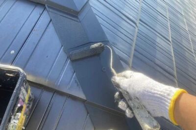 屋根板金部の上塗りを行います。