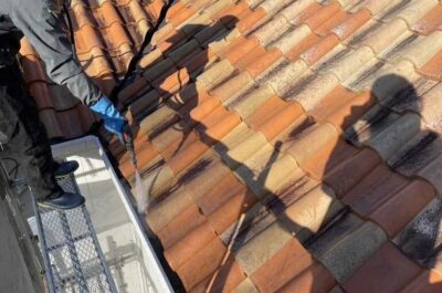 屋根や外壁、ベランダ床や土間を綺麗に洗いました。