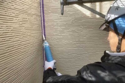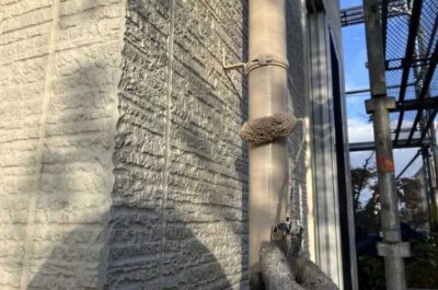 壁に充填してありました既存シーリング材を外壁を傷つけない程度に削りました。