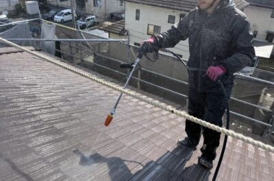 屋根や雨樋の中は塗装は行いませんが、汚れていたため高圧洗浄で綺麗に洗います。
