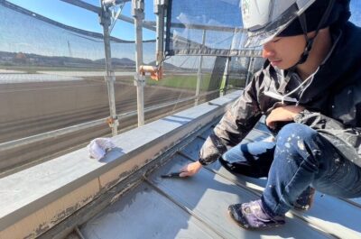 表面を清掃、場合によってはあえて表面を荒らして塗料がのりやすくするために行います。