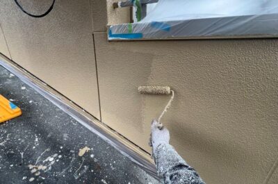 本日は外壁の中塗りを行いました。